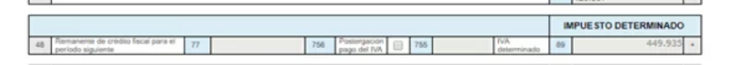 LUEGO DE EL INGRESO DE LA INFORMACIÓN DE COMPRAS Y VENTAS, EL IMPUESTO DETERMINADO A PAGAR O REMANENTE PARA PERIODO SIGUIENTE SE VERÁN EN LA LINEA N°48.