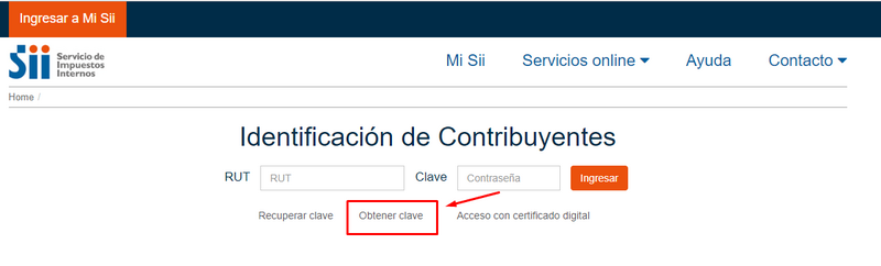 Ingresa a WWW.SII.CL , y dirígete a INGRESAR A MI SII, luego presiona OBTENER CLAVE.