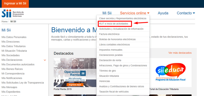 Ya tienes tu clave, por lo que procedemos a dar inicio de actividades como contribuyente de segunda categoría, por ello es que nos dirigimos a “servicios online” y luego “RUT e Inicio de actividades”.